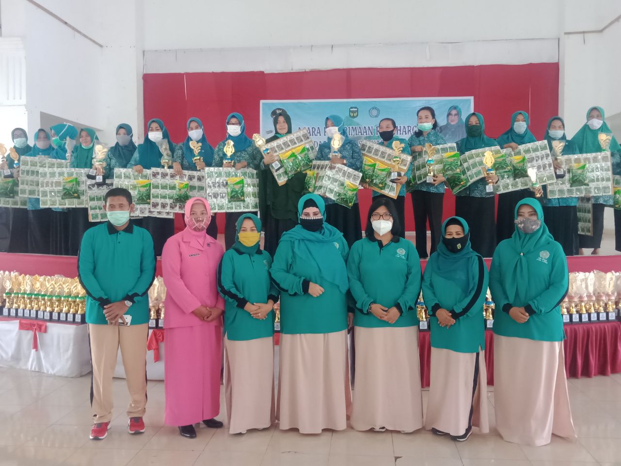 Selain menerima penghargaan, para kelompok dasawisma juga menerima bantuan bibit sayuran yang di wakili oleh Ketua TP PKK Kecamatan masing-masing.