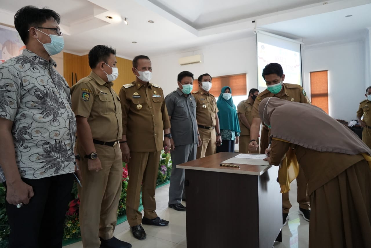 Dr. Andy, Kepala Bidang Pemerintahan dan Pembangunan Manusia mewakili Kepala Bappelitbangda Provinsi Sulawesi Selatan memberikan apresiasi kepada pemerintah Kabupaten Luwu atas terlaksananya Aksi 3 Rembuk Stunting.