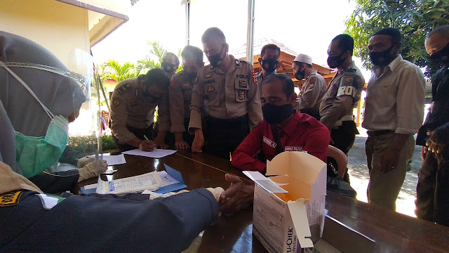 Luwu, Aksara.News — Ratusan personil Polres Luwu dan Polsek jajaran, melakukab rapid test massal di Mapolres Luwu, Senin 21/09/20. Satu persatu, anggota Polri ini menjalani rapid test, sampel darah diambil untuk diuji.