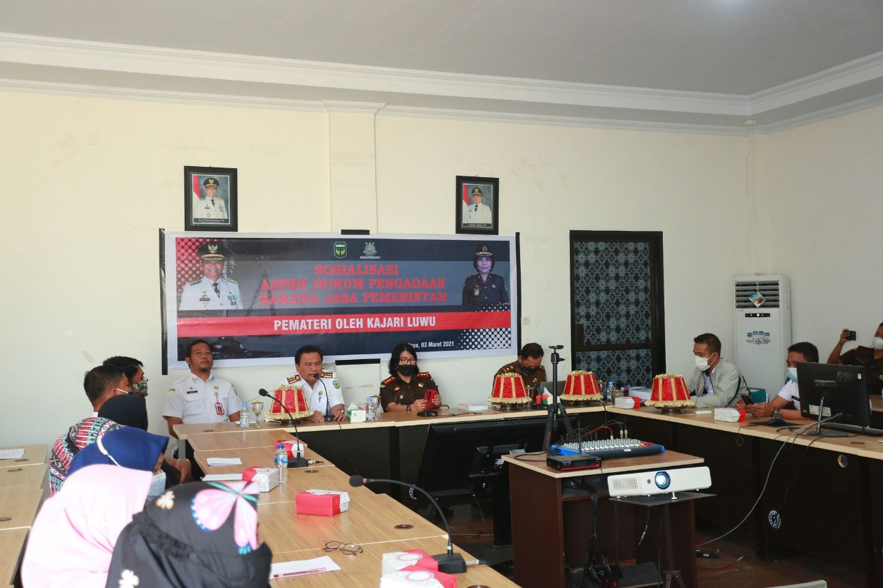 Belopa,– Unit kerja pengadaan barang dan jasa (UKPBJ) Kabupaten Luwu, bekerjasama dengan Kejaksaan Negeri Luwu menggelar kegiatan Penyuluhan Hukum tentang Pencegahan Tindak Pidana Korupsi dalam pelaksanaan Pengadaan Barang Jasa Pemerintah di ruang rapat Bappeda Luwu, Rabu (3 Maret 2021).