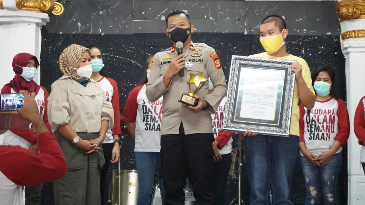 Penghargaan atau award itu diserahkan langsung oleh pimpinan yayasan Imaculata Autism Boarding School, Dr. Immaculata Umiyati di kantornya, Jalan Taman Harapan Baru, Kecamatan Medan Satria, Kota Bekasi, Jawa Barat (Jabar). Rabu (24/3/2021) pagi.