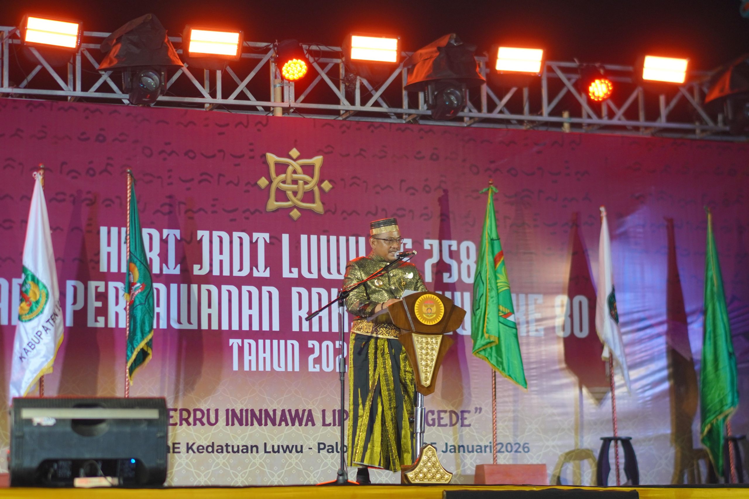 Palopo, Aksaranews.id – Bupati Luwu, Patahudding, menyampaikan komitmen bersama pembentukan Daerah Otonomi Baru (DOB) Kabupaten Luwu Tengah dan Provinsi Luwu Raya pada malam puncak Peringatan Hari Jadi Luwu (HJL) ke-758 dan Hari Perlawanan Rakyat Luwu (HPRL) ke-80 di Istana Kedatuan Luwu, Belopa, Jumat (23/1/2026).