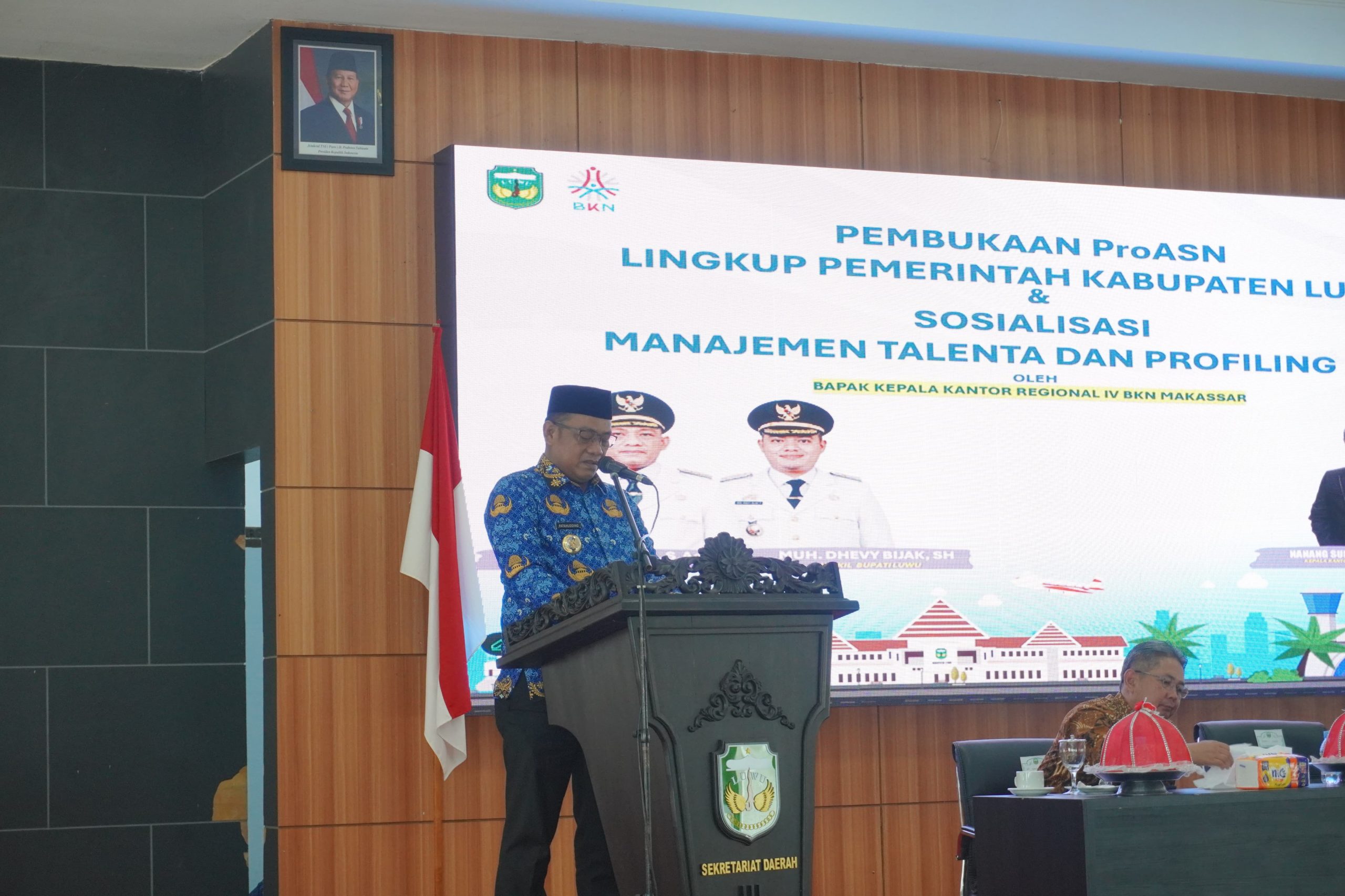 Dalam sambutannya, Bupati Luwu, Patahudding menegaskan pentingnya kegiatan ini sebagai bagian dari upaya peningkatan kualitas aparatur. Menurutnya, tantangan pemerintahan saat ini makin kompleks sehingga ASN dituntut adaptif, kompeten, profesional, dan responsif. Ia menyebutkan bahwa uji kompetensi dalam ProASN meliputi kompetensi manajerial dan sosial kultural, potensi intelektual dan interpersonal, literasi digital, serta preferensi karier.