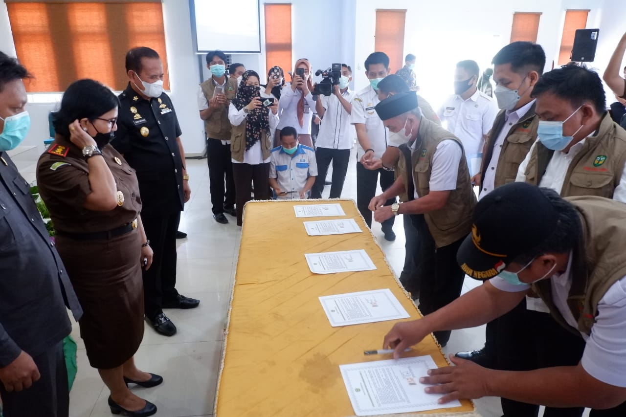 LUWU – Empat (4) Organisasi Perangkat Daerah Pemerintah Kabupaten Luwu menjadi pilot project Pencanangan Pembangunan Zona Integritas Menuju Wilayah Bebas dari Korupsi (WBK) dan Wilayah Birokrasi Bersih dan Melayani (WBBM) di aula Kantor Bappelitbangda, Kelurahan Senga Kecamatan Belopa, Kamis (4 Maret 2021)