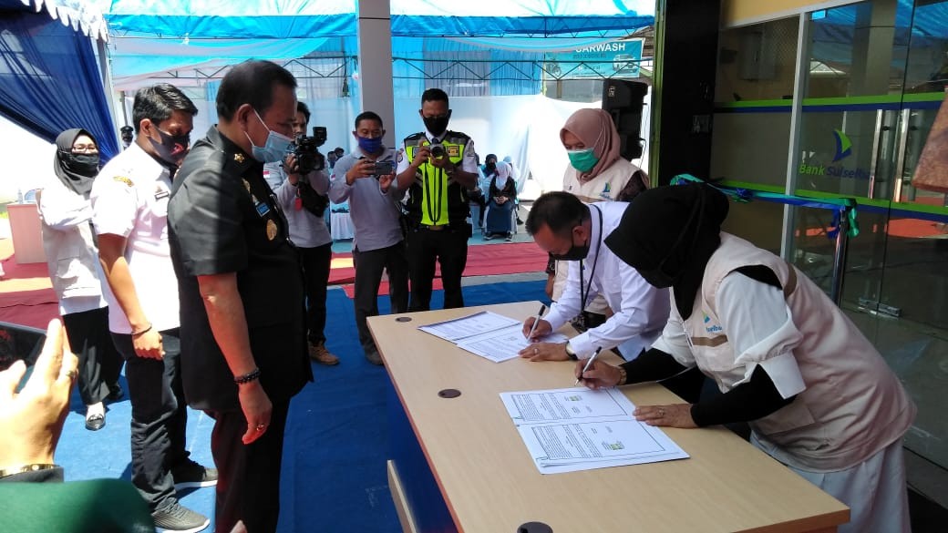 Luwu, Aksara.News – Bupati Luwu, H Basmin Mattayang meresmian Kantor Kas Bua PT Bank Sulselbar Cabang Belopa serta menyaksikan penandatanganan Perjanjian Kerja Sama Simpanan Pelajar (Simpel) se Kabupaten Luwu di desa Tanarigella Kecamatan Bua, Rabu (11/11/2020)