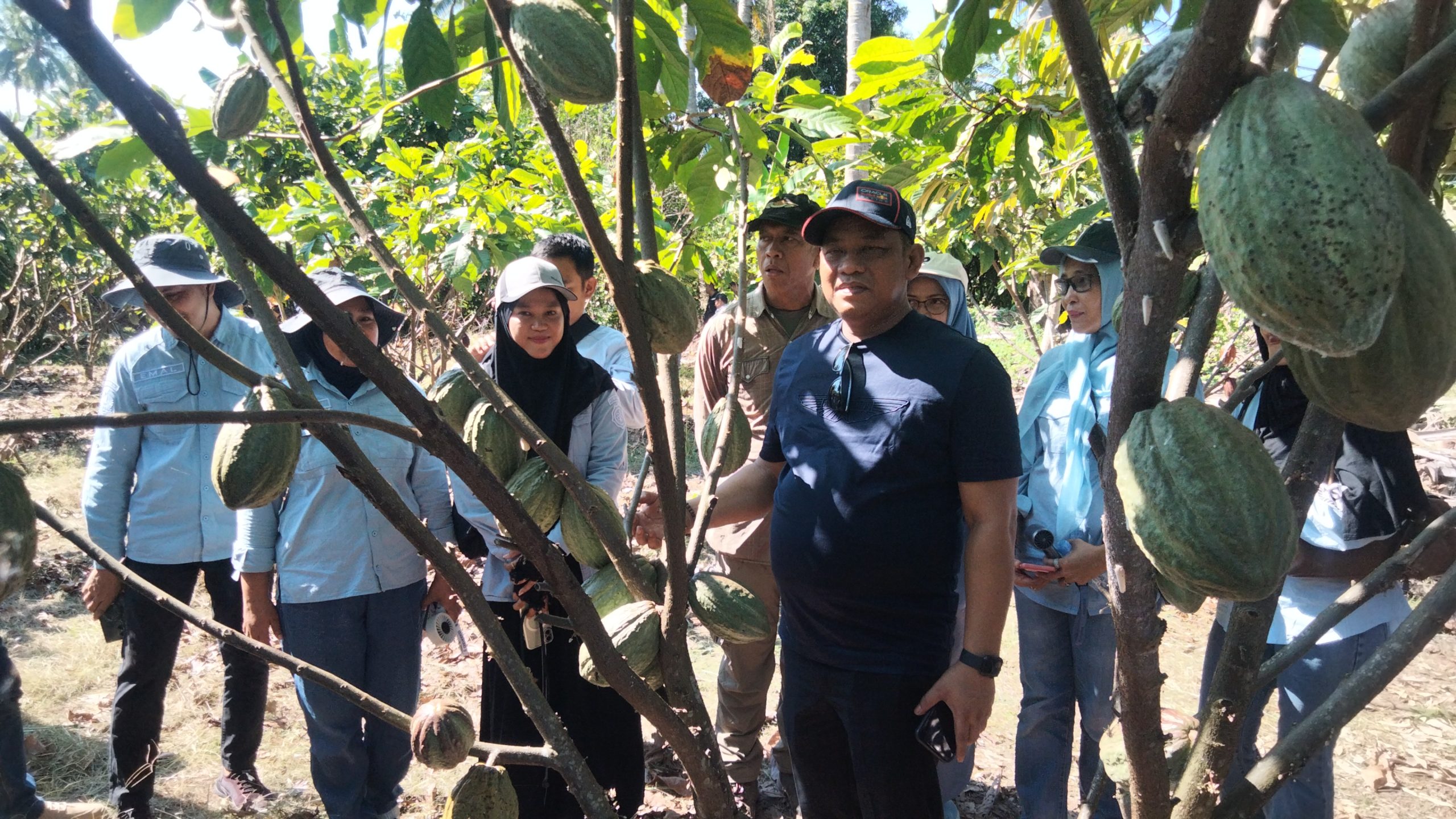 LUWU, aksaranews.id – Bupati Luwu, H. Patahudding, meninjau pohon kakao calon entris sambung pucuk di kebun warga milik H. Malle dan H. Rahman di Desa Kamburi, Kecamatan Bupon, Kabupaten Luwu, Sabtu (25/4/2026) sore.