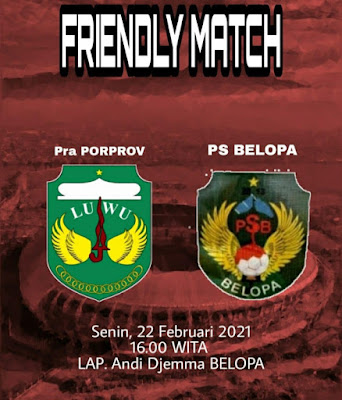 LUWU — Tim Pra Pekan Olahraga Provinsi, (Pra-Porprov) Kabupaten Luwu Akan melakukan laga uji coba dengan kesebelasan PS Belopa (PSB), Senin 22 Februari 2021 di Lapangan Andi Djemma Belopa Sekira Pukul 16:00 WITA.