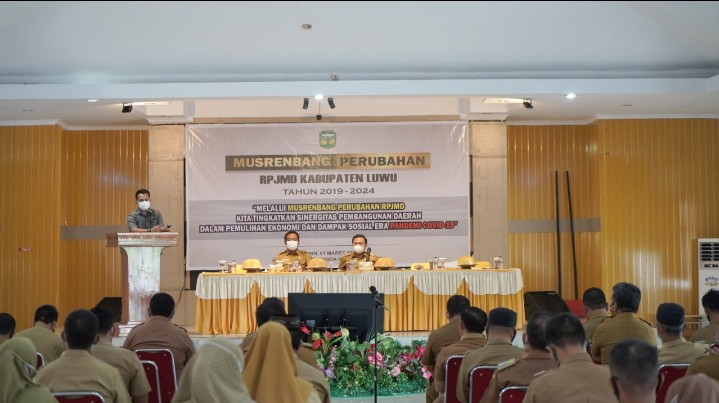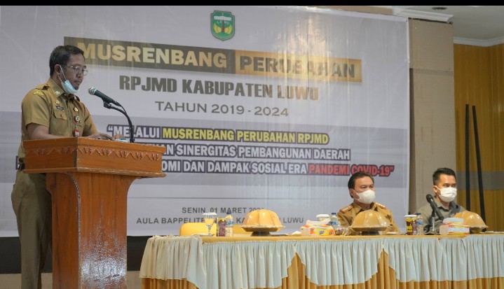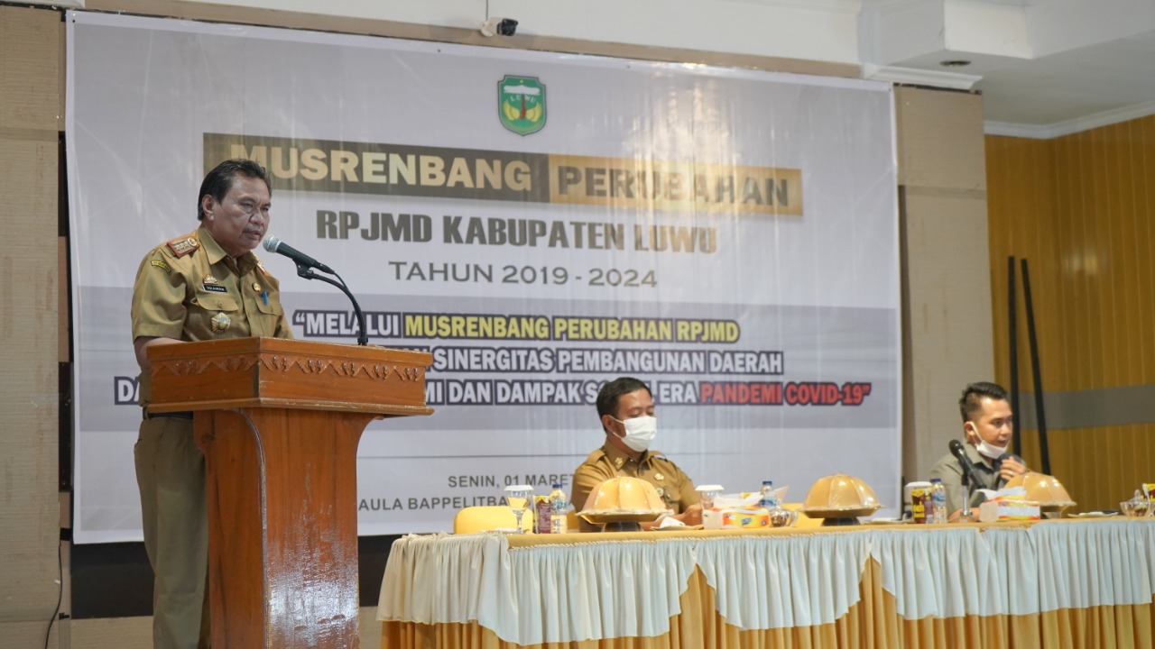 Luwu, Aksara.News — Musyawarah Perencanaan Pembangunan (Musrenbang) dalam rangka Penyusunan Perubahan Rencana Pembangunan Jangka Menengah Daerah (RPJMD) Kabupaten Luwu Tahun 2019-2024 di aula pertemuan Kantor Bappelitbangda, Senin 01 Januari 2021.