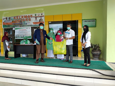 Donasi yang di berikan berupa jas hujan, masker, Hand Scoon, dan Face Shield hasil kreasi tangan tim KOMANDO relawan Covid 19.