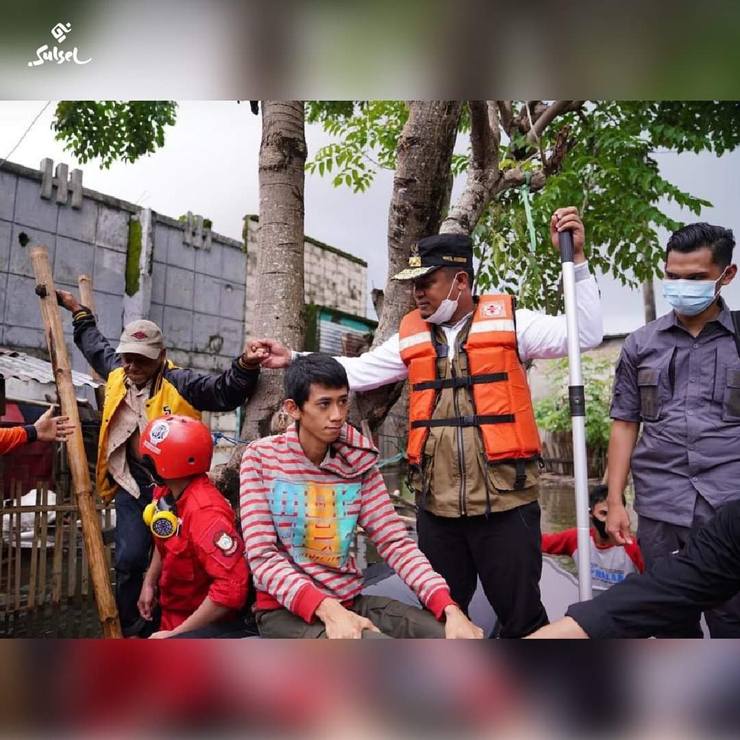 “Kami turun karena ada ibu dan balita kembarnya dari laporan tidak mau dievakuasi. Saya langsung turun karena balita itu berisiko jika air naik lagi elevasinya. Lama kami bernegosiasi dan merayu anaknya. Alhamdulillah mereka mau. Anak rentan dan beresiko bagi keselamatan nyawa mereka sekeluarga jika air terus naik,” ungkap Andi Sudirman saat mengevakuasi salah satu korban terdampak banjir.