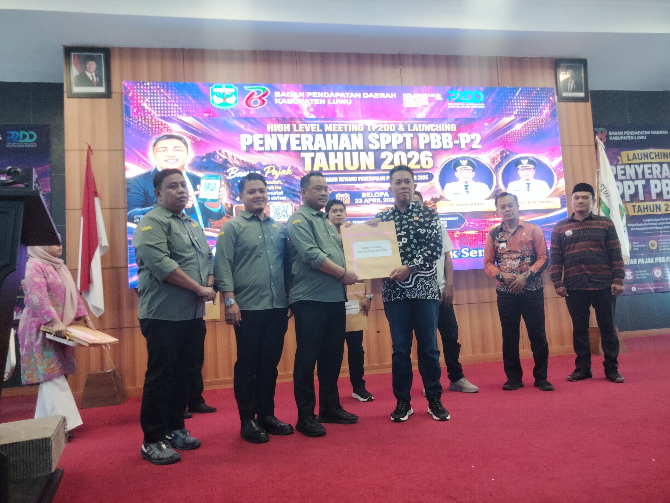 Luwu, Aksaranews.id – Bupati Luwu, H. Patahudding, menyampaikan sambutan pada acara High Level Meeting Tim Percepatan dan Perluasan Digitalisasi Daerah (TP2DD) Tahun 2026, Penyerahan SPPT PBB-P2 Tahun 2026, dan Pemberian Penghargaan (Reward) Atas Prestasi Capaian Pajak Daerah Tahun 2025 di Belopa, Rabu (23/4/2026).